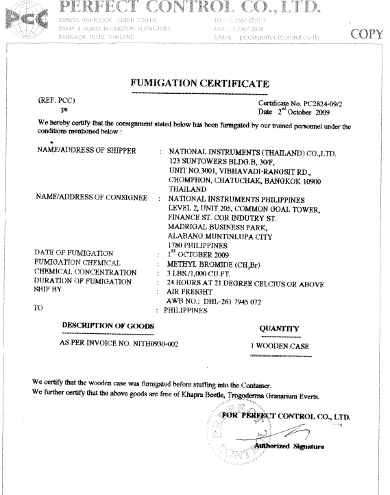 · ใบรับรอง (Certificate): อาจต้องมีใบรับรอง เช่น ใบรับรองสุขอนามัยพืช (Phytosanitary Certificate) สำหรับสินค้าที่บรรจุ และเอกสารรับรองการรมยา